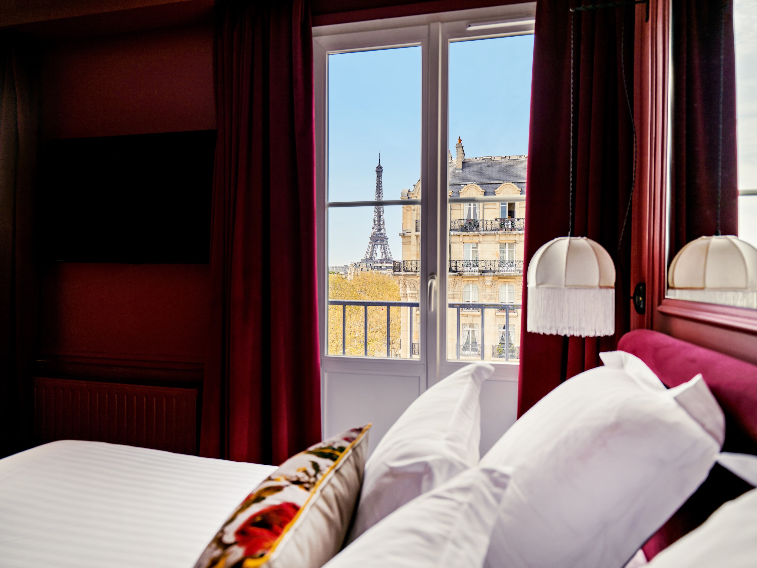 L’établissement 4 étoiles propose 40 chambres dont la décoration rend hommage au Paris du début du XXe siècle (velours en majesté, globes terrestres patinés, anciens appareils photo…). L’expérience continue avec l’espace bien-être, aménagé dans les caves voûtées de l’hôtel, qui comprend un bain à remous et un sauna infrarouge pour une déconnexion totale. La vie parisienne sans le stress, un luxe qui n’a rien d’un rêve.