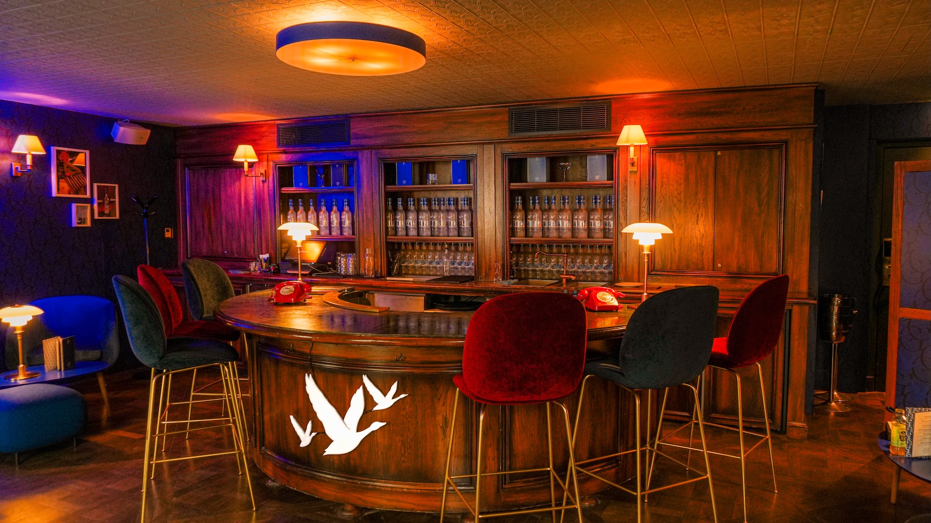 Les murs ont été retapissés d’un papier peint bleu nuit rappelant la signature des bouteilles Grey Goose ; les canapés, fauteuils et chaises de bar adoptent ce même ton, tandis que les étagères alignent les flacons de cette vodka 100 % française (le blé tendre d’hiver vient de Picardie et l’eau de source de Gensac-La-Pallue dans le département de la Charente). Les cocktails signature mettent en avant les saveurs de cet alcool, tandis qu’on les déguste au rythme de DJ sets différents au fil des semaines.