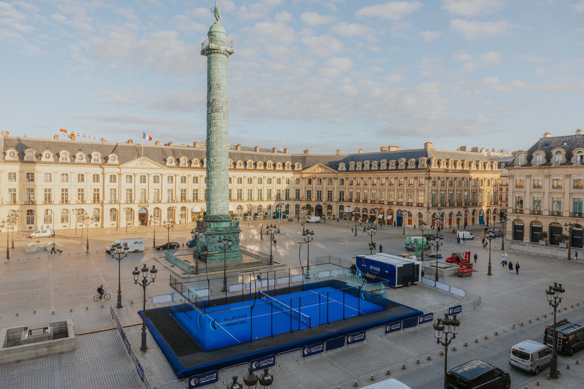 Mais, en cette matinée de septembre, elle offre un tout autre visage. Au pied de l’iconique colonne Vendôme, un terrain de padel a été installé pour quelques jours, en marge de l’Alpine Paris Major 2025, dont la quatrième édition se tient dans l’enceinte du stade Roland-Garros.